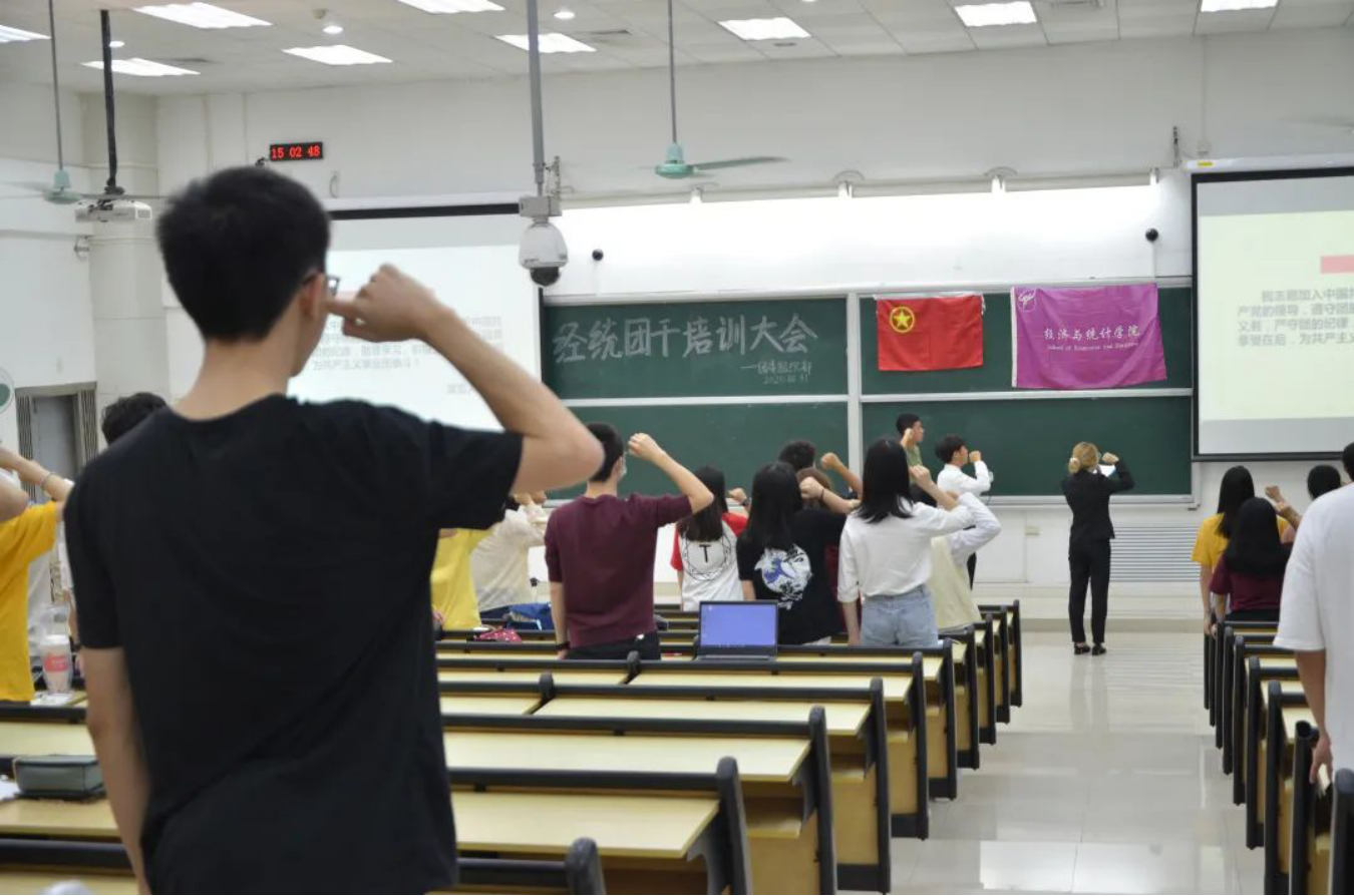 随后,主持人阐述了中国共产主义青年团的意义和团建的基本要求,并带领全员宣读入团誓词。在一片整齐且高昂的宣誓声中,团干部的个人使命感油然而生。