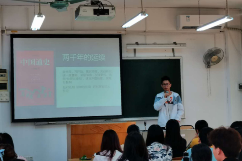 经济201微团课于11月2日晚上7点在桂花岗11号楼南207课室进行。微团课以“中国通史”为主题,团支书陈泳臻为主讲人。课程介绍了《中国通史》的内容及其作者,并对春秋战国时期的中国发展史进行深入剖析,阐述新时代党的治理思想,联系现实生活,号召同学们要“阅读经典百书,争做时代新人”。课程期间全体同学积极参加,现场气氛活跃,课程效果极佳,课程任务圆满完成。